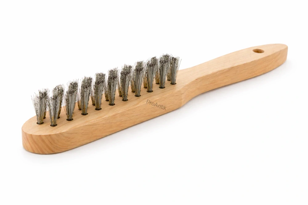 Z prvotřídního voskovaného, bukového dřeva se zaoblenými hranami, s otvorem na zavěšení, délka 280 mm. Pro všechny lehké práce na odstraňování rzi, starých nátěrů a čištění.