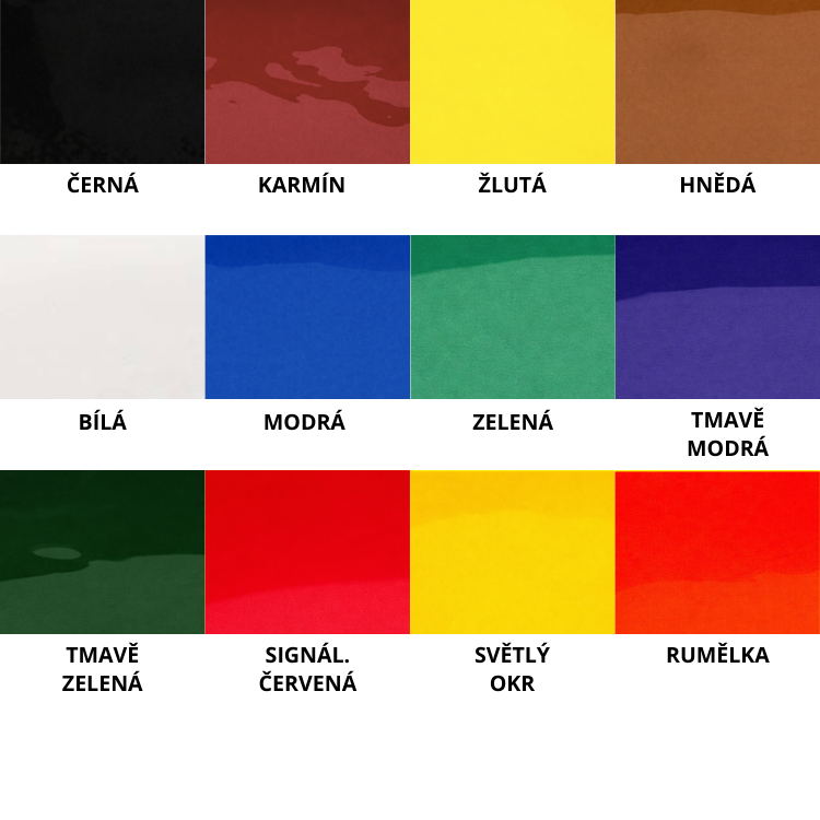 - Odolnost: Barva je světlostálá (nebledne) a po vytvrzení je voděodolná.