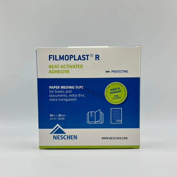 Neschen Filmoplast R je ultratenký, transparentní japonský papír (alpha-celulóza) určený pro neviditelné opravy a celoplošnou laminaci historických dokumentů. Je opatřen vrstvou tepelně aktivovatelného akrylátového lepidla, které je bez kyselin a odolné vůči stárnutí.