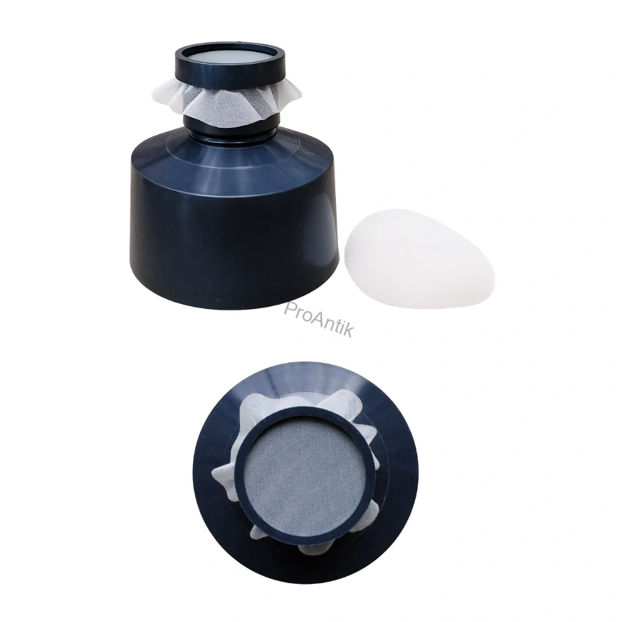 - Trychtýřovitý tvar, vložka síta z extra jemné polyesterové tkaniny (210 µm), horní průměr: 120 mm a výtok: 50 mm.