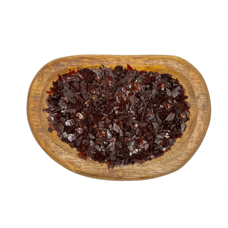 Tento šelak, obchodně označovaný jako Bona v potravinářské kvalitě, má v surovém stavu podobu červených šupinek přírodní pryskyřice.