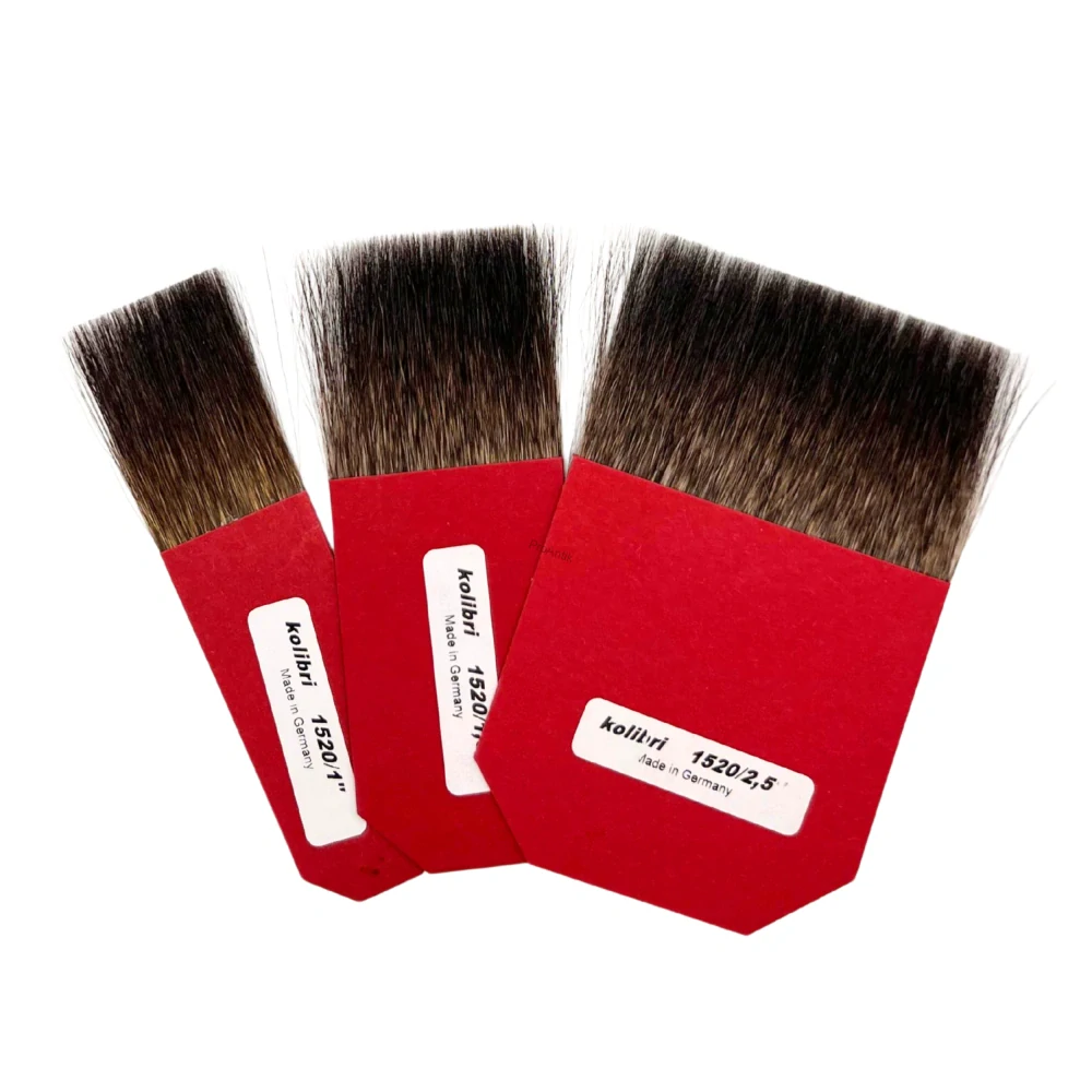 Ploché štětce Kolibri série 1525 jsou osazeny jemnými přírodními chlupy z veverky, které se vyznačují mimořádnou hebkostí a citlivostí při práci.
