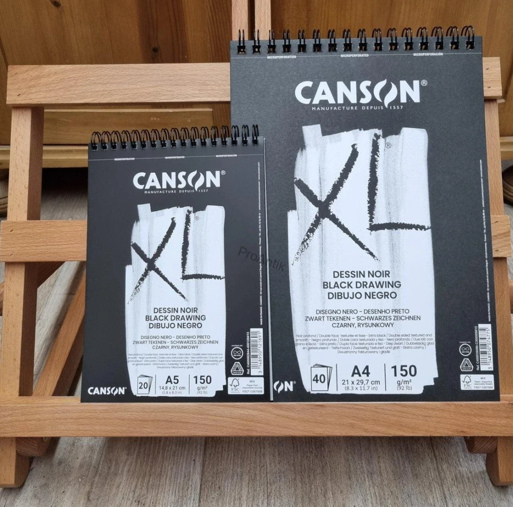 - Canson XL Black Drawing – černý kreslicí papír 150 g/m² 20 listů > 14,8 x 21 cm (A5)